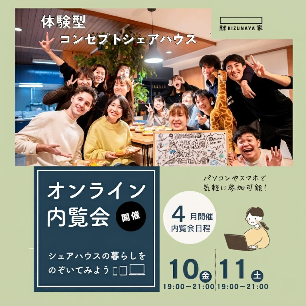 絆家シェアハウスの日常をご紹介。ハウスの雰囲気や温度をお届けします。