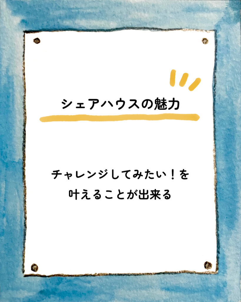 こんにちは!絆家シェアハウスの入居者さんの実体験をまとめた漫画企画がスタートしました! イラストは元canvasファミリーのannaちゃん。みんななんでシェアハウスに暮らし始めたの?どんなポイントでシェアハウス選びを行ったの?実際の入居者さんの声を元に漫画でリアルなシェア体験記をお届けします!