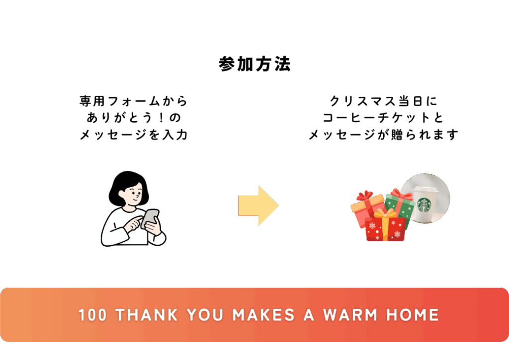 On Christmas Day, December 25th, Kizunaya will send your message and a surprise gift (a Starbucks Coffee ticket) to the recipient.