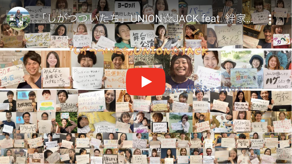 そう考え、18年間活動を続けてきたバンド活動で、想いを込めて作ったオリジナル曲にあわせて、絆家シェアハウスのファミリーに協力をしてもらい【コロナが終わったら何がしたい?】というメッセージを書いてもらいました。