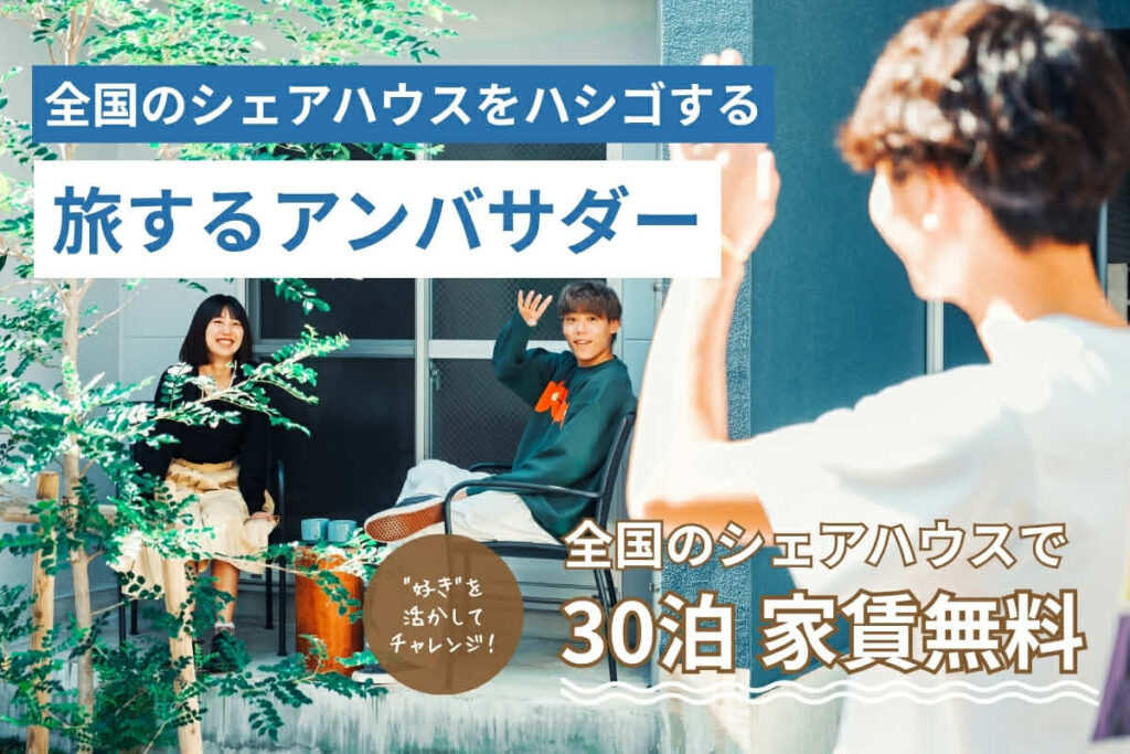 今回は滞在費無料(光熱費の支払いあり)で滞在する代わりにプログラムに参画いただくアンバサダープログラム内容となります。