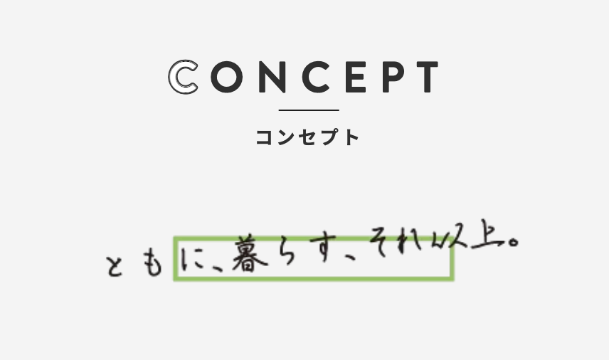 絆家の現在のコンセプトは「ともに、暮らす、それ以上。」です。