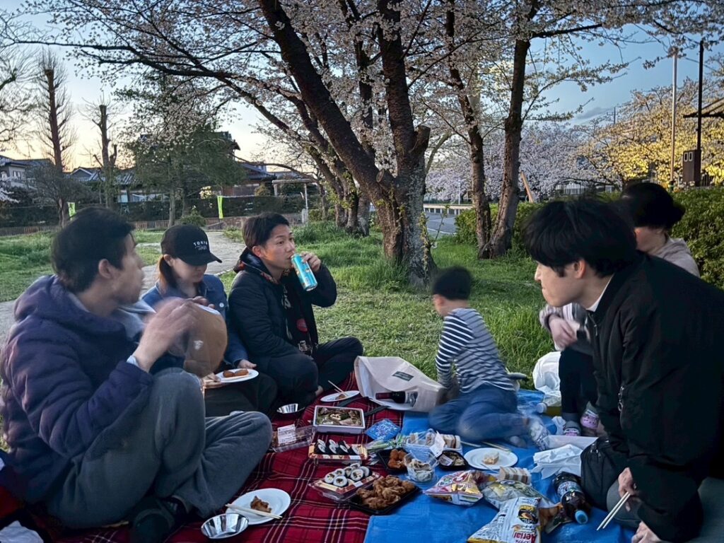 夜の公園でライトアップもない、ほんとに地元感のあるお花見。でもそれがまた、のんびりしていて、すごくよかったんです。