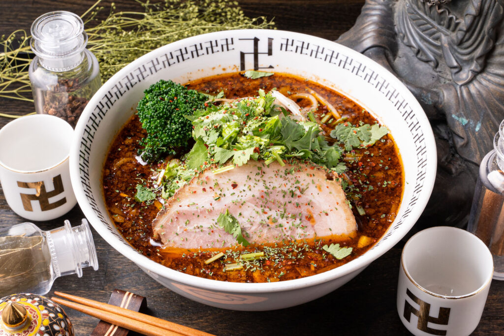 スパイスラーメンというジャンルの新しいラーメン店。薬味のパクチーが、良いアクセントになり、深い味わいが楽しめます。常連の間で人気のお店です。