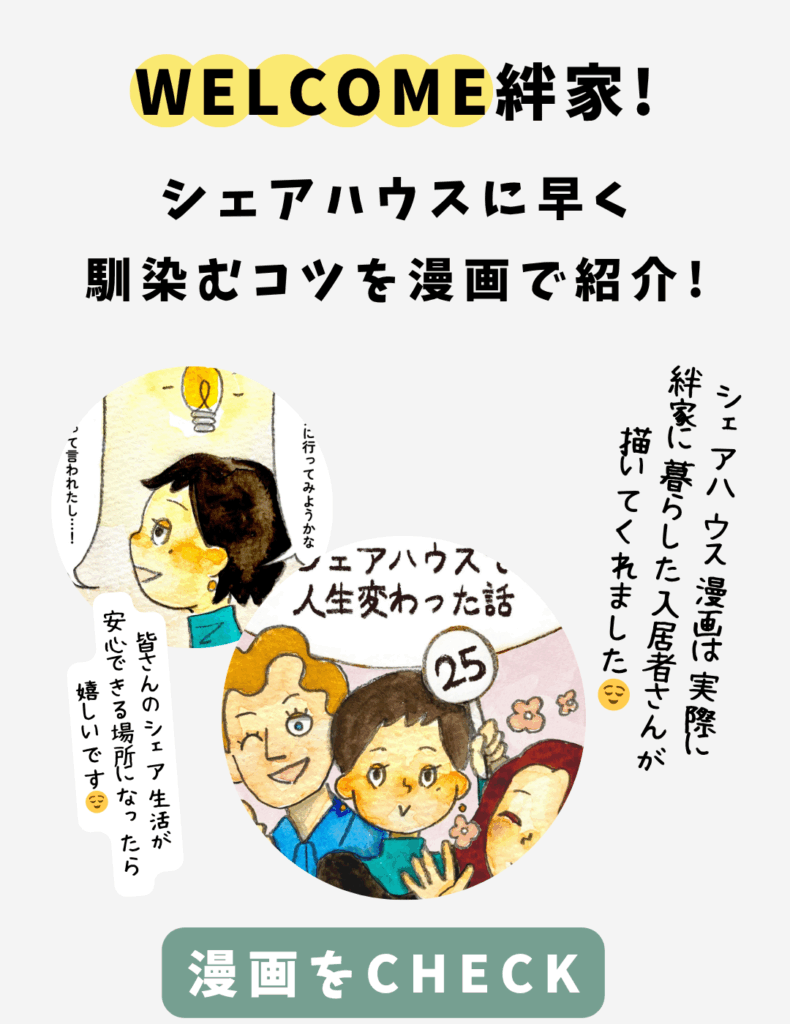 絆家の広告塔うっちーくん。人好きで、話好き。絆家のいろんなシェアハウスを巡っては、家の様子をブログに上げることが趣味。最近は、東京以外にも大阪にも絆家ファミリーが増えてきてとっても喜んでいる♪