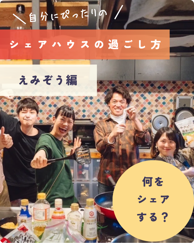 ごはん会/学び場/部活動など、初めてのシェア生活に安心な体験を提供します