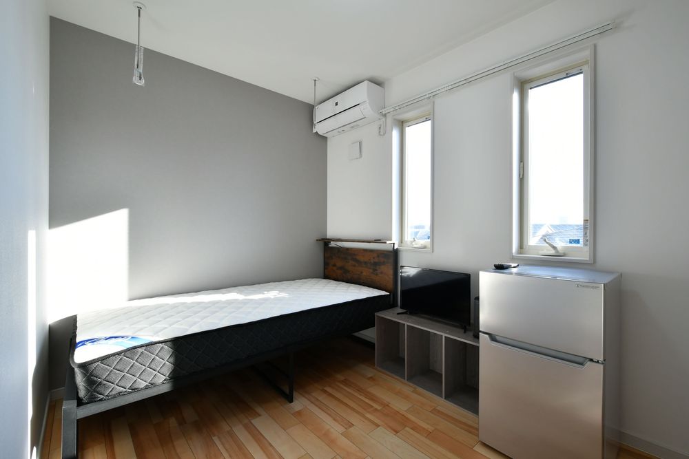 エアコン・ベッド・カーテン・収納スペース・冷蔵庫を完備しております。一部ハウスによって異なりますため、詳しくは内覧時にお問い合わせください。