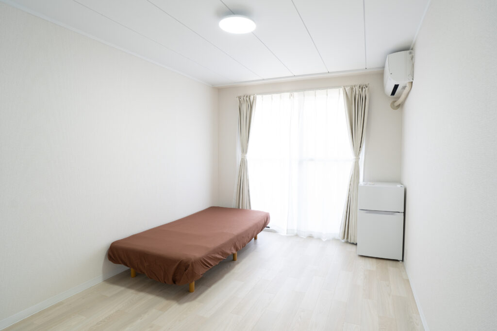 エアコン・ベッド・カーテン・収納スペース・冷蔵庫を完備しております。一部ハウスによって異なりますため、詳しくは内覧時にお問い合わせください。