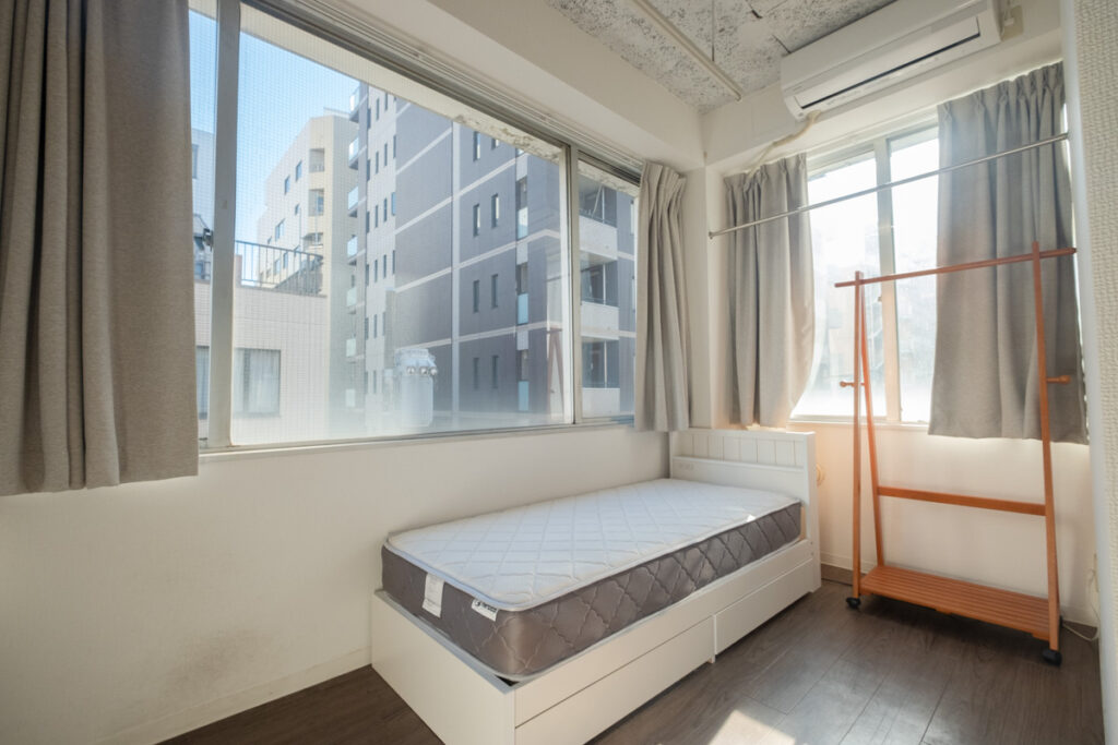 Yes, air conditioners, beds, curtains, storage space, and refrigerators are provided. Please inquire at the time of viewing for details.